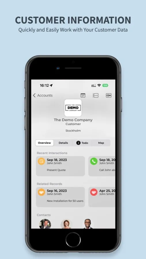 Efficiently and easily work with customer data while on the move. Add or update contacts, create a new, or why not close that business deal.