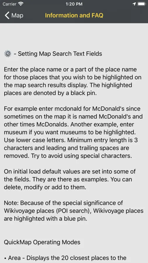 1. Area - Displays the 20 closest places to the center of the map without regard to heading. Position the map anywhere in the world and discover interesting places there.