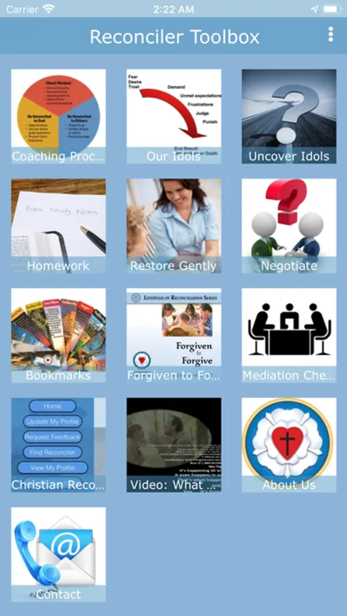For the Reconciler, this app is loaded with helpful tools to assist in coaching. This app is ideal for anyone desiring to assist others in conflict respond in a biblically faithful manner. Based on Ambassadors of Reconciliation's practicum training entitled Coaching others Through Conflict, this app includes the following useful tools: