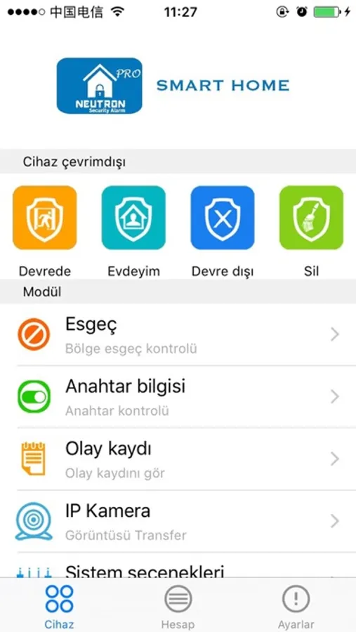 türlü mobil cihazına indirebilirisiniz, istediğiniz anda cebinizden alarmınızı devreye alıp-devreden çıkarabilmenize imkan sağlayan ve alarm tetik özelliği ile evinizde oluşan her türlü sorunu anında cebinizden takp etmenize imkan sağlayan bir hizmettir.