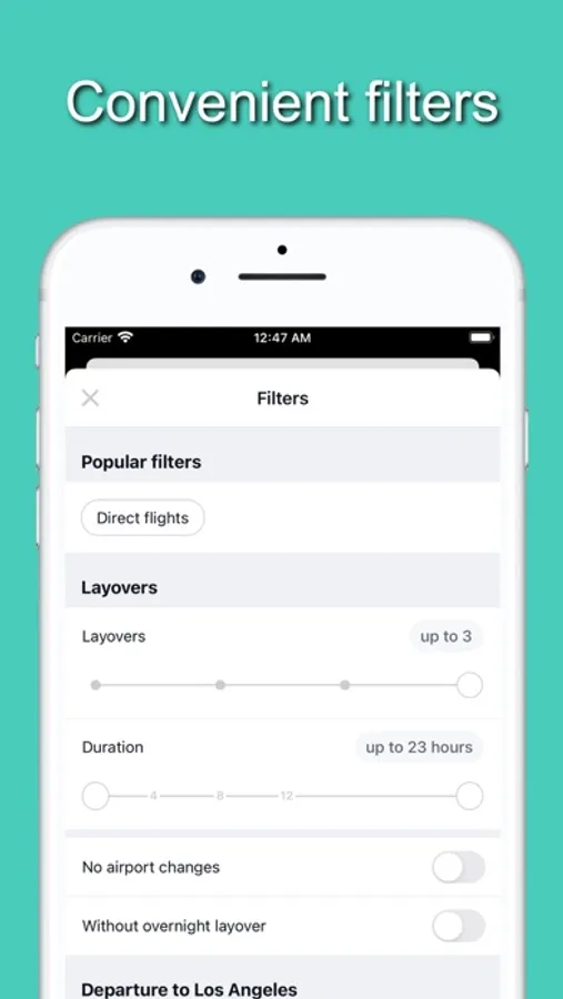 The third useful feature of the Cheap Flights Worldwide is the availability of a well-designed filter system. At your request can be issued quite a lot of results. In order not to get confused, you can immediately cut off the unsuitable.