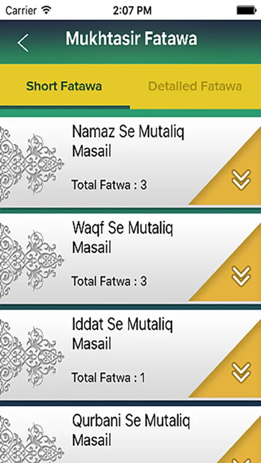 o Text Fatawa: This section contains Questions asked by different people and its answers in