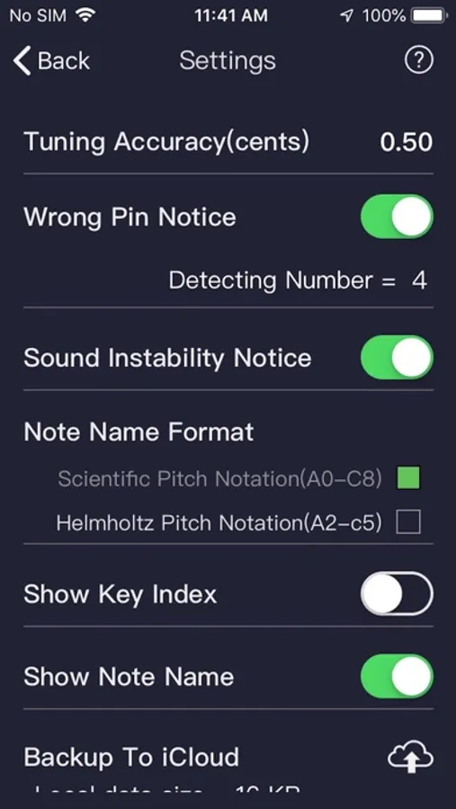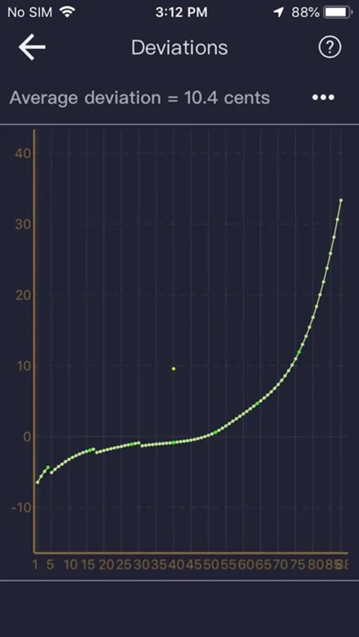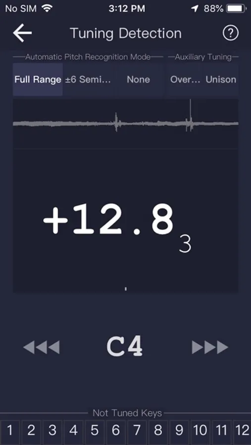 It is more direct and accurate to display the deviation value by numerical figure. This makes there no need to keep a close eye on the display screen when a piano key is struck, and the app will keep to display the detecting result after the end of the tone.