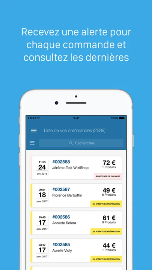 Classez vos commandes selon leur état (attente de préparation, livrée...)