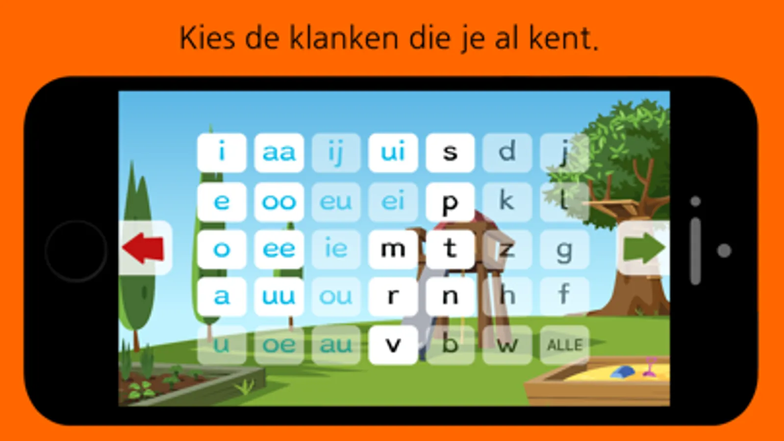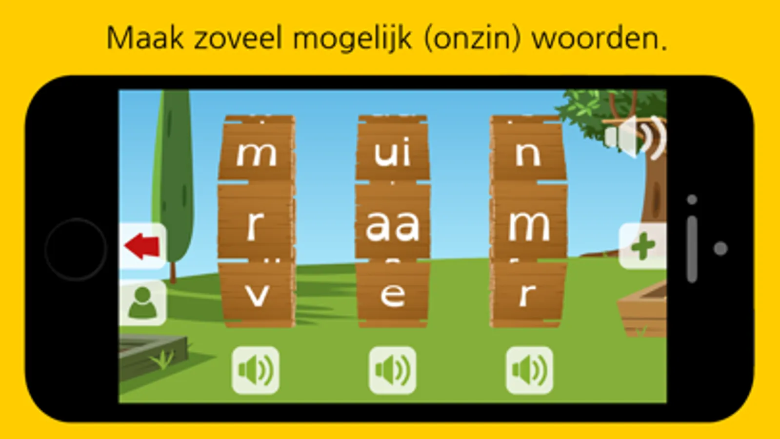 De app (bedacht door leerkrachten) is goed thuis te gebruiken, alsook in de klas. Het leent zich prachtig voor een gezamenlijke opdracht als; Zet zoveel mogelijk woorden in je tuin met een p-, of met -en.