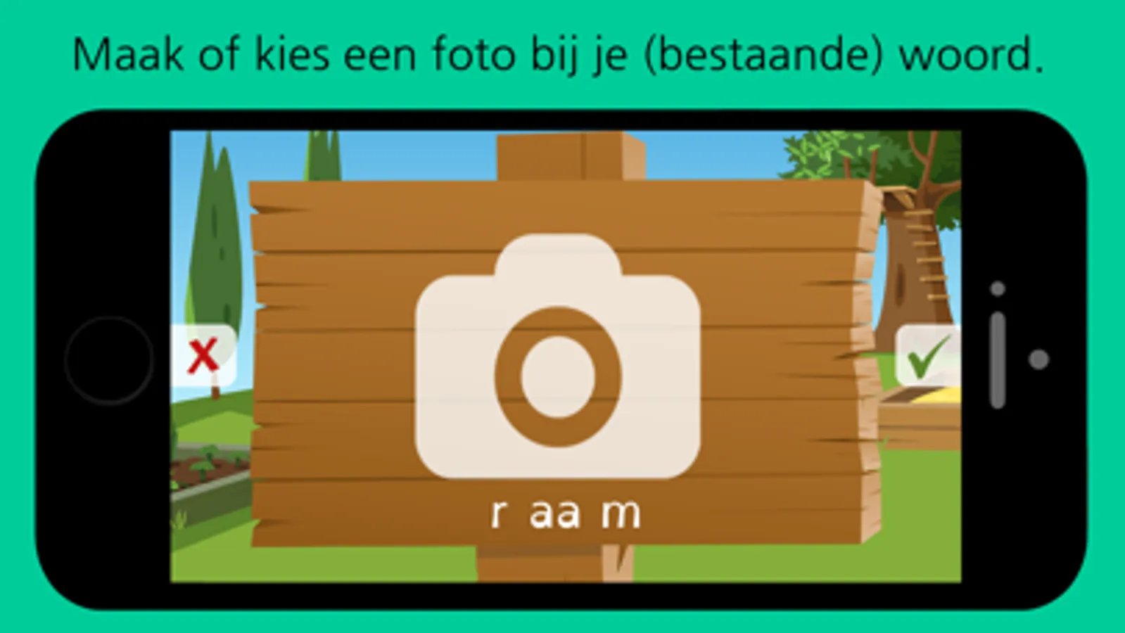 Als het kind een bestaand woord gemaakt heeft, kan hij/zij hier een foto bij maken en deze vervolgens opslaan in zijn/haar tuin. Zo krijgt het succes een plek!