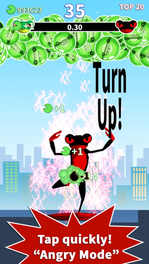 Tap the screen quickly! The frog will be more angry and more powerful.