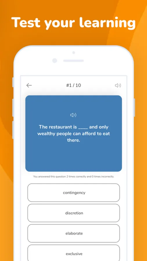 Understand the meanings of the words and how they are used in the sample sentence. Simply swipe right to record the words you wish to remember. Remember that these will come up again for you to repeat later.