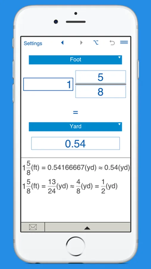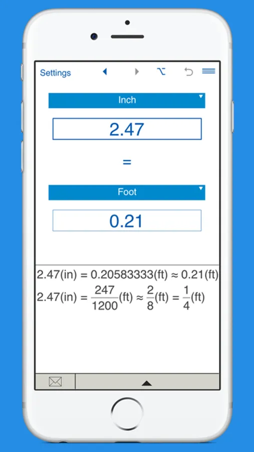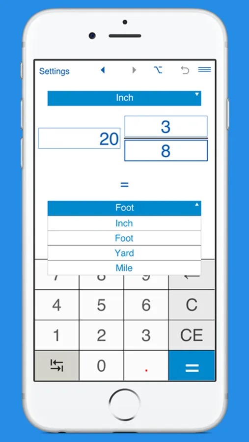 A handy app to convert between inches, feet, yards and miles.
