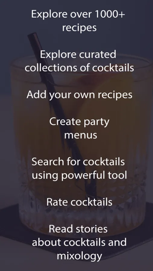 A huge selection of cocktails with collections of recipes for any occasion. Descriptions of all ingredients and variants for their replacement. Add your drinks to the bar and you can see what you can make from them. Have your own cocktail? Add it to the app. Rate cocktails and create your own selection of the best cocktails.