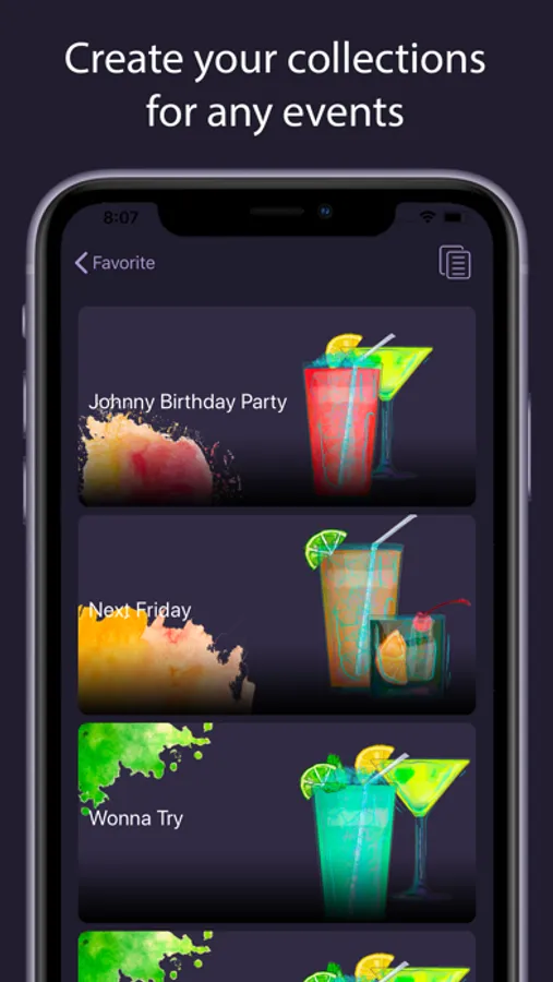 Tired of writing out the most interesting recipes? No problem! Create you own collections for any ocassion for your home bar.