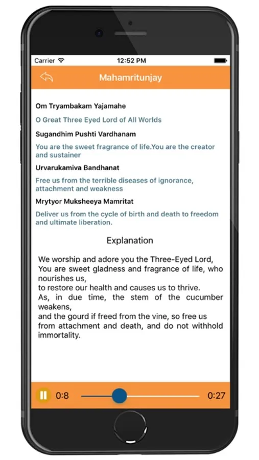 Learn and listen to popular mantras in Hindi with English translation. The mantra repeat continuously which can be helpful in meditation.