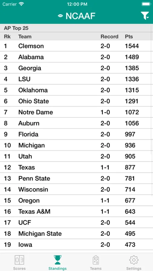Download the app and chill out for the whole College Football season. It will instantly and constantly provide you with college football scores, rankings and news.