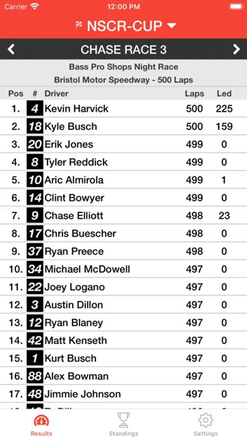 Carefully browse and follow the racing results and alerts on a beautiful and intuitive interface. The results and standings are updated live.