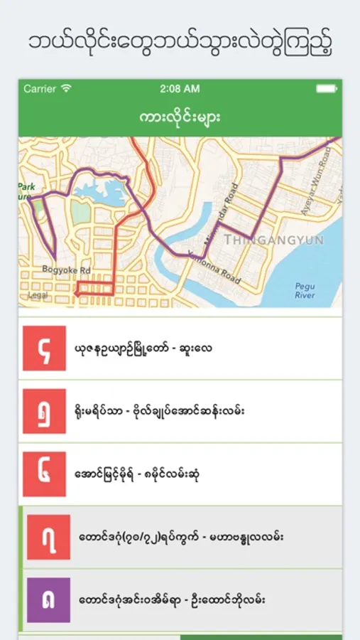 Yangon Bus app with routing capability. It can show you all possible trip plans.