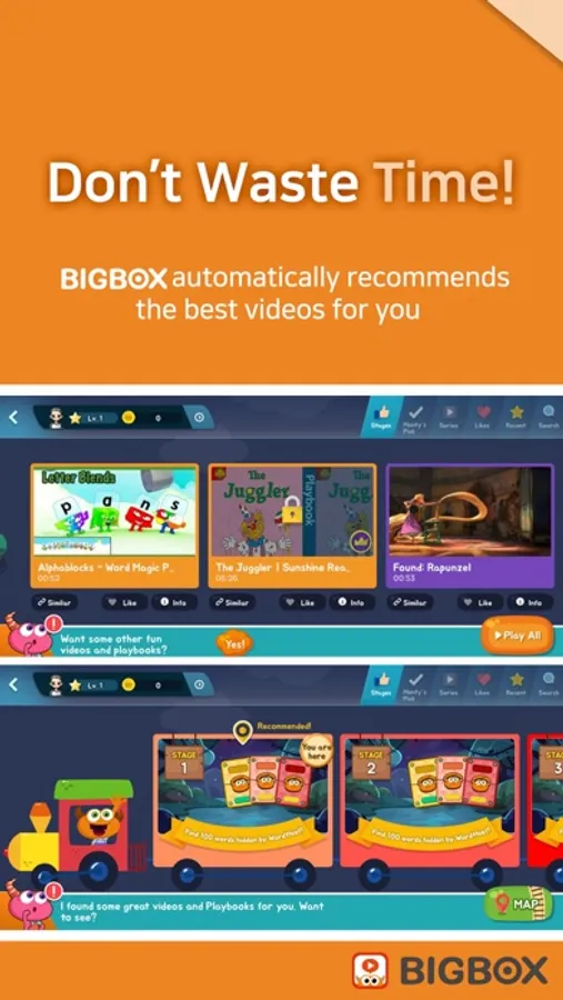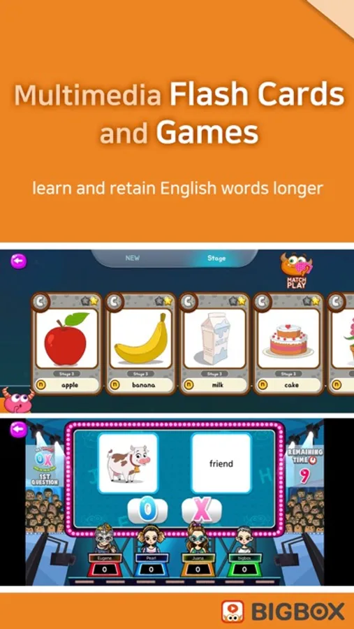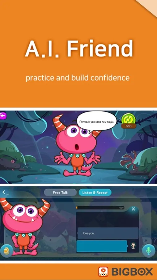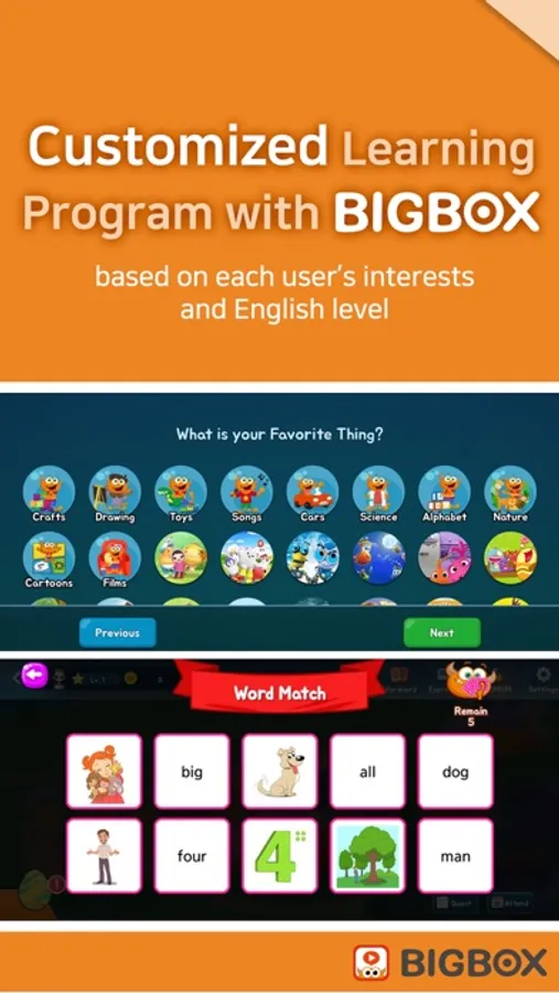 BIGBOX is a customized educational service that allows users to learn English through watching videos and various mission-based learning.