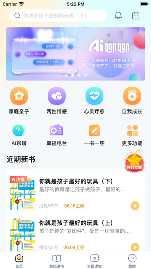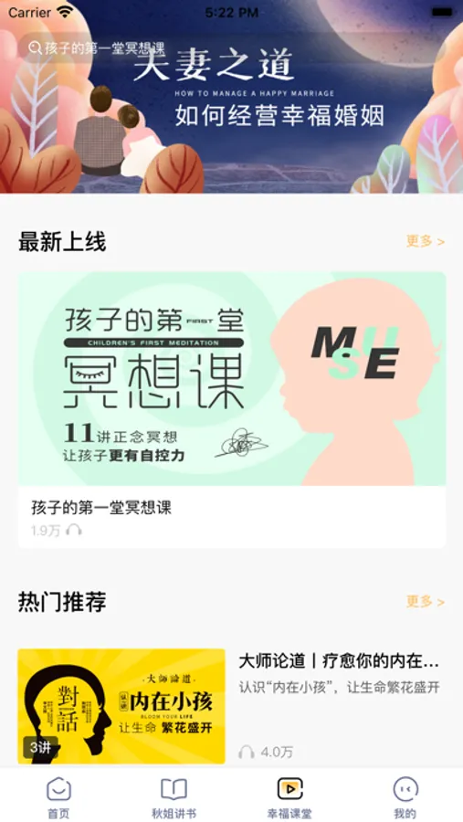 全民幸福社是一个身心灵领域的读书产品,同时也不单单是一个读书产品。这里的书籍都经过了筛选,同时根据书籍主题,为读者设计了不同的心理学小练习,通过练习真切感悟书中内容。