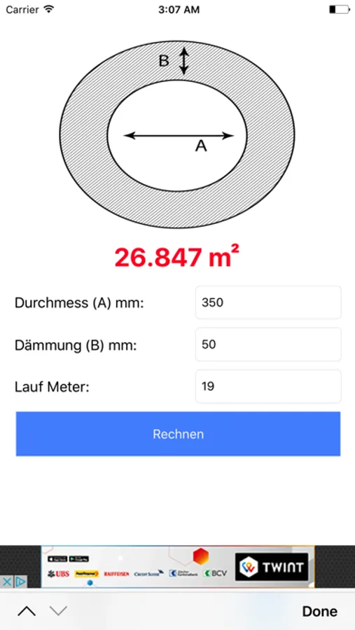 Rechnen Sie hier wieviel Isolation Sie brauchen, um einen Lüftungskanal und/oder Rohr zu isolieren. Einfach die Masse und die Dämmungsstärke eingeben und es wird die exakte Quadratmeter ausrechnen..