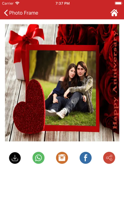 - Share your Wedding anniversary photo frame with your friends or family members via social media.