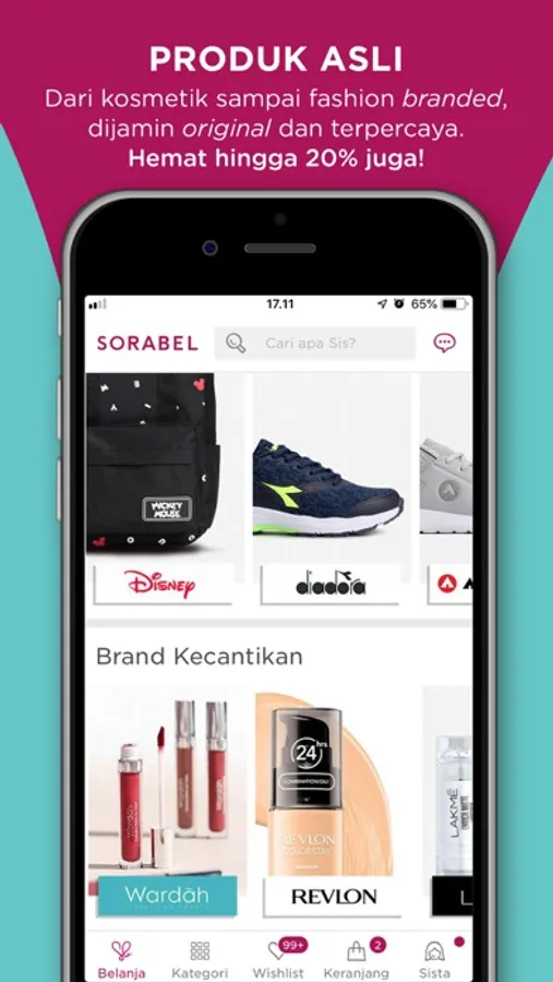 Selain fashion, Sista juga bisa mendapatkan berbagai kebutuhan kecantikan di aplikasi ini. Baik untuk perawatan kulit, juga untuk riasan wajah. Sorabel sudah kerja sama dengan lebih dari 30 brand kecantikan loh, Sis. Jadi Sista bisa mendapatkan harga yang lebih hemat dan produk yang dijamin asli!