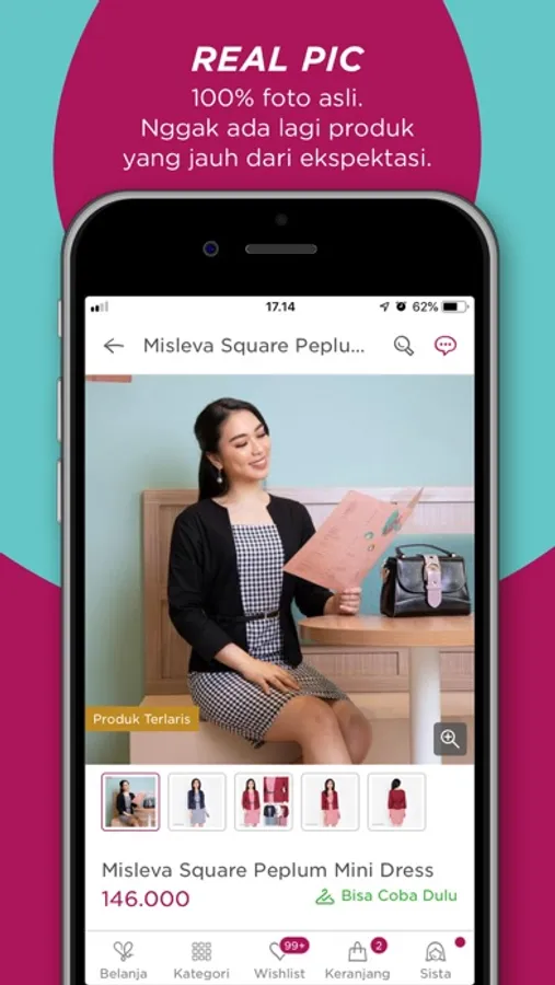 Semua produk fashion di aplikasi Sorabel menggunakan foto asli & model sendiri.