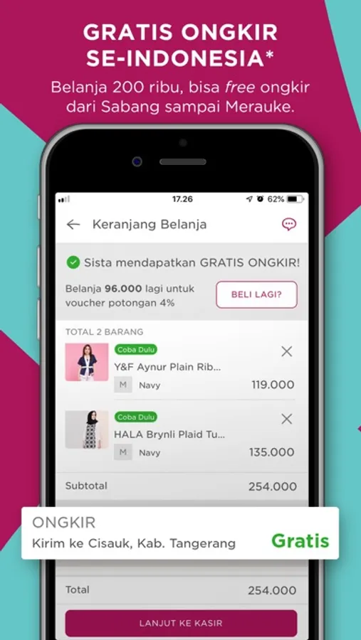 Sista bisa coba dulu produk yang dipesan ketika kurir datang. Kalau nggak cocok, bisa langsung balikin ke kurir, dan bayar yang cocok aja! Layanan ini berlaku di seluruh Indonesia.