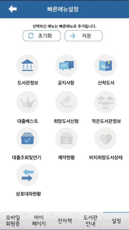 - 서비스 내용 : 도서검색, 모바일회원증, 도서관안내, 전자책, 대출조회 및 연기, 도서예약, 비치희망도서 신청 등