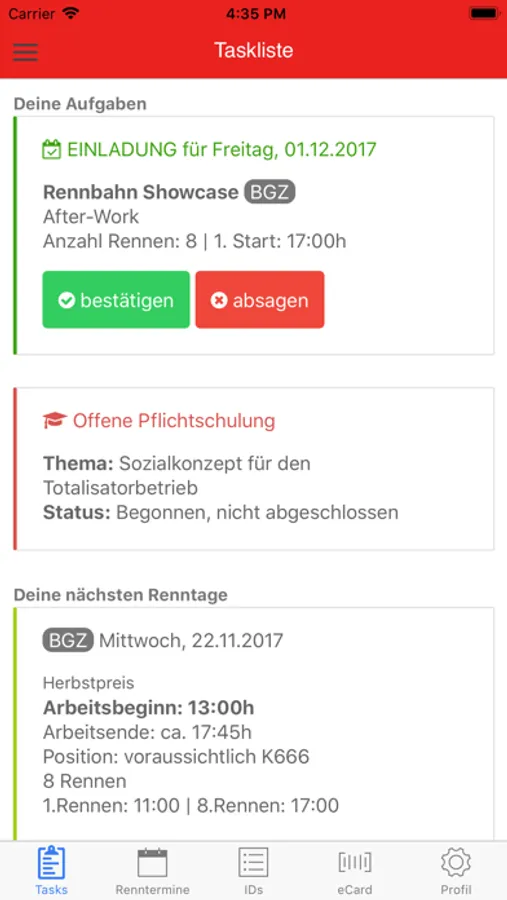 Die Einladungen zu einem konkreten Renntag werden den Toto-Mitarbeitern über eine Push-Nachricht mitgeteilt. Der Check-In, also die Bestätigung des Arbeitseinsatzes, erfolgt auch über die App.