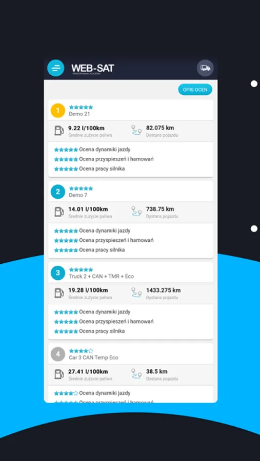 - ocena jazdy kierowcy.