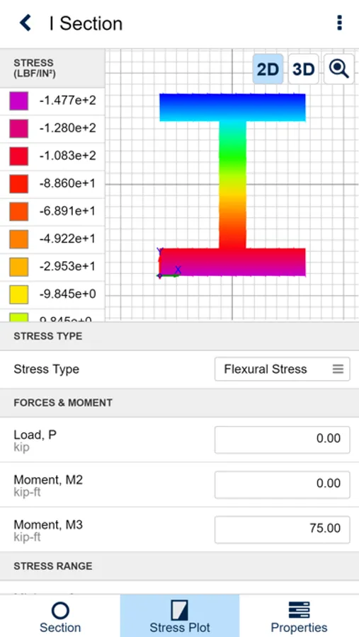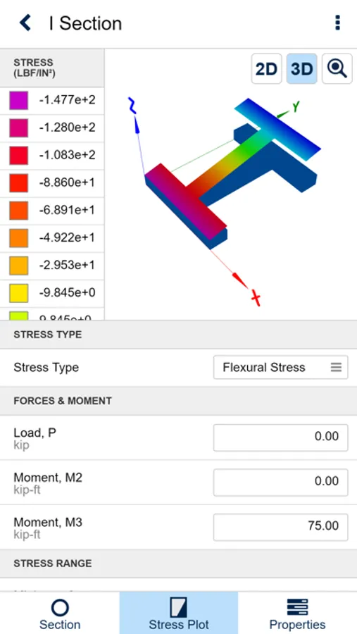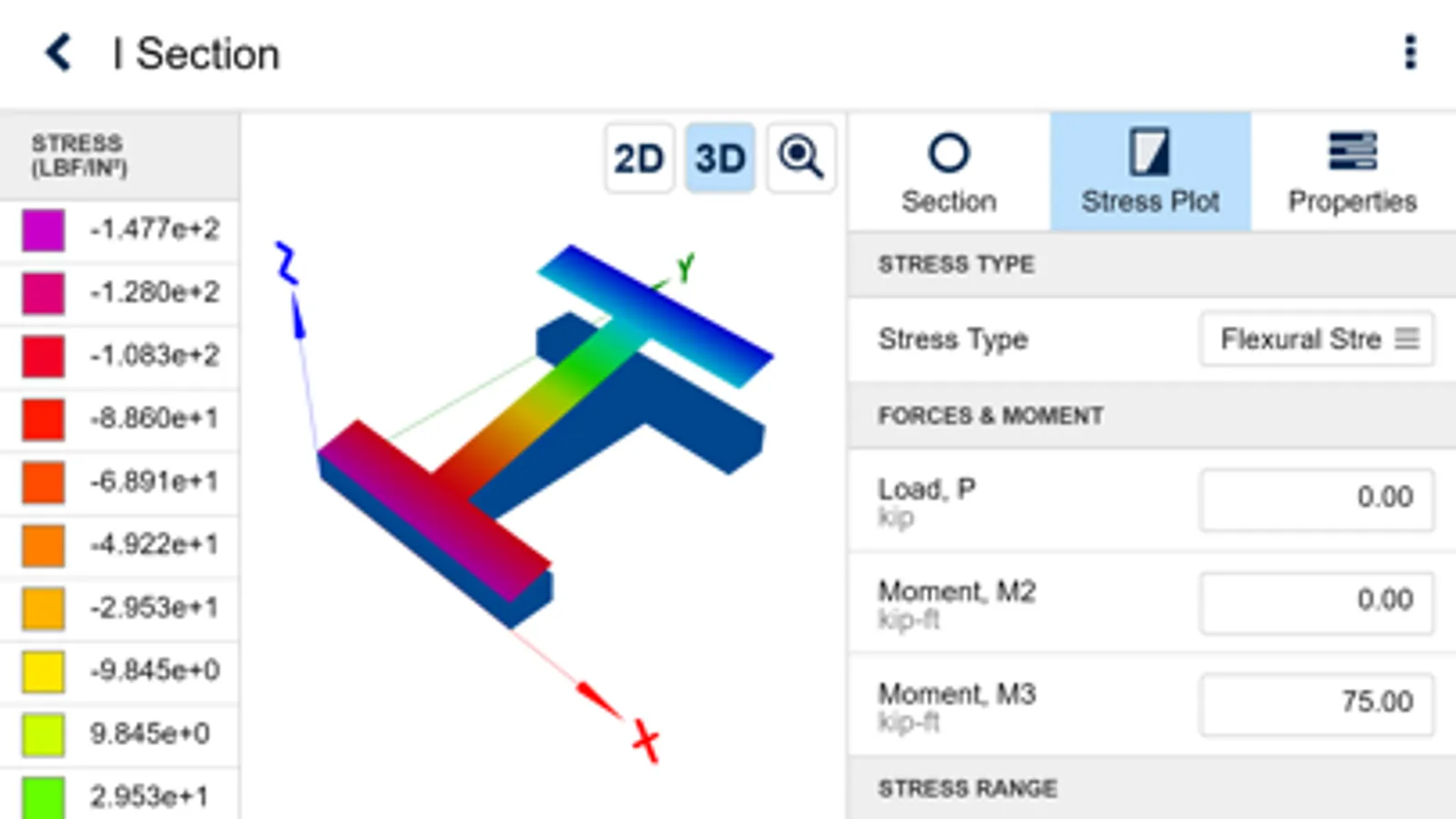 CSiStress is an app that conveniently shows the stress plots and profiles in order to understand cross-sectional behavior caused by axial loads, bending moments, shear forces and torsional moments of more than 25 shapes.
