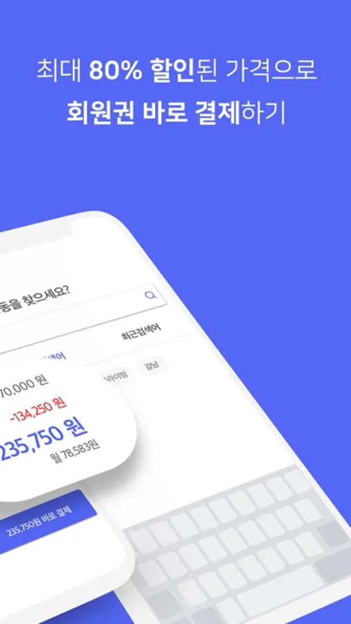 원래 운동 시설에서 이용하시던 1/3/6/12개월 회원권 구조로 판매를 하고 있어요. 여러 시설 이용시에는 선택하신 센터 가격에 따라 가격이 다르게 책정됩니다. 원하는 센터를 회원권 카트에 담아 확인해보세요! (센터 정보에서 ‘다른 곳 같이다니기 클릭)