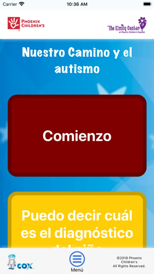 The Emily Center en Phoenix Children’s Hospital presenta Nuestro Camino y el autismo para que las familias con niños autistas sepan identificar lo que necesitan saber. Partes de esta aplicación podrían utilizarse en las consultas en la clínica y en la sala de emergencia.