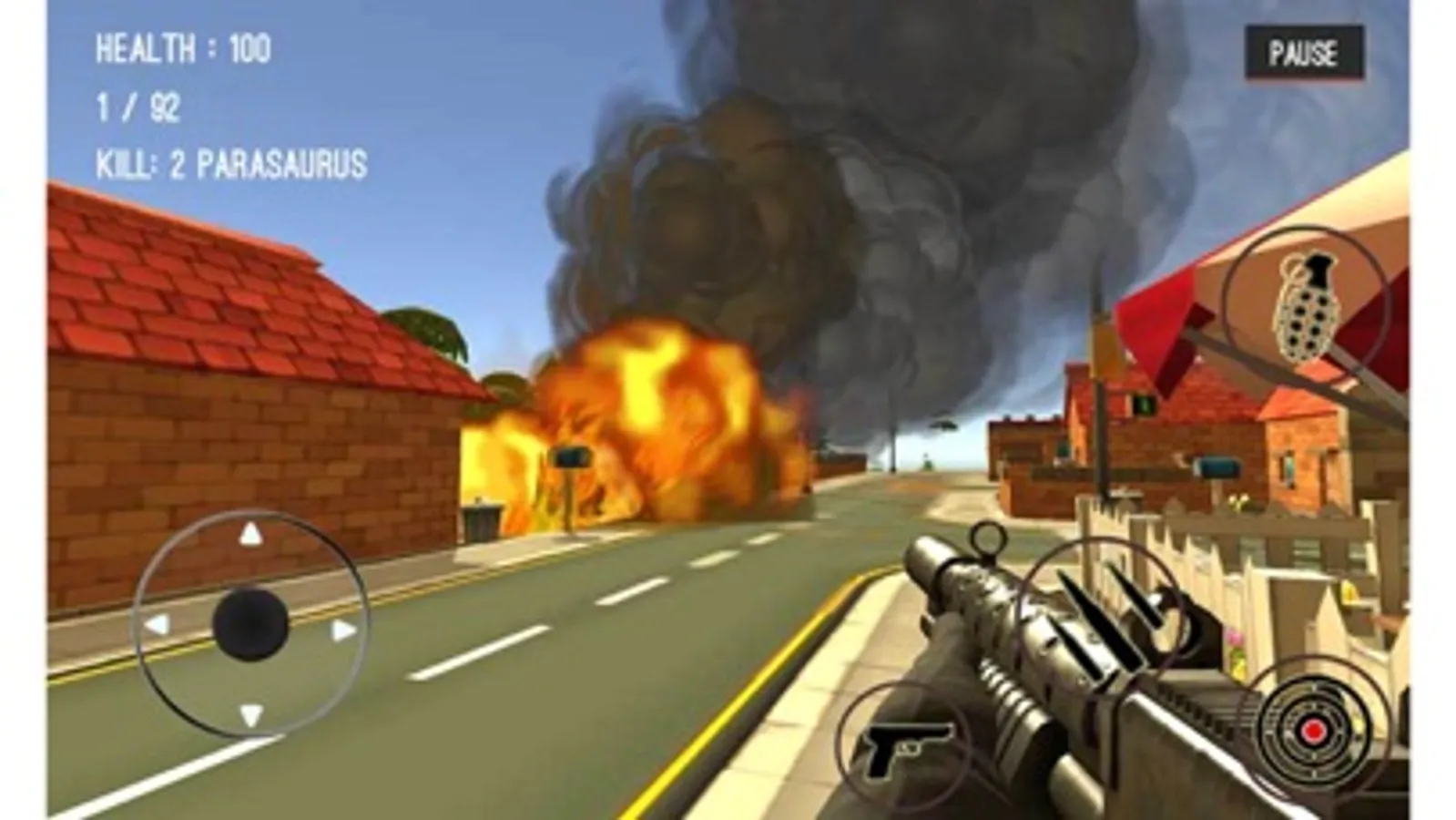 Dinosaur Hunter Dino City is new intense 3D first person action shooter game. Game contains singleplayer. You can pick from arsenal of weapons - army knife, desert eagle, RPG, sniper gun, m4 rifle, AK 47, grenade, uzi. Realistic outdoor hd graphics is compareable to visuals of AAA assault army games from high-end PC. You can configure graphics to fit your device, so you can play more smootly and your movement will be more fluent. This game was made on unity engine. Each class contains main weapon, but you can also buy / upgrade other weapons, ammo, armor and bullets to the primal gun. Singleplayer campaign mission consists of simple task, which is to eliminate all dinosaurs from city. After each finished game, you gain experience ( xp ) and bounty money.