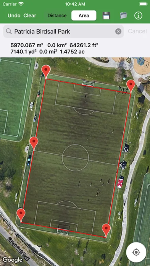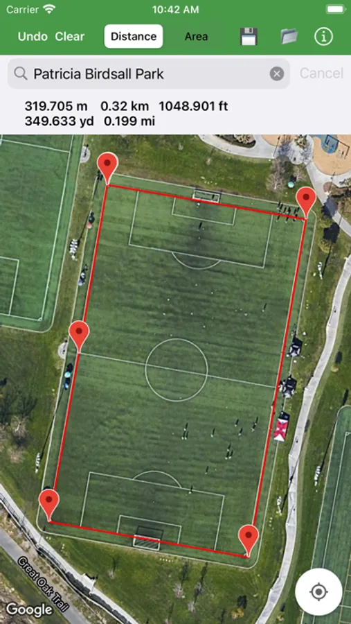 Measure the size of a home lot, plat of land, park, sports field, walking route, etc.