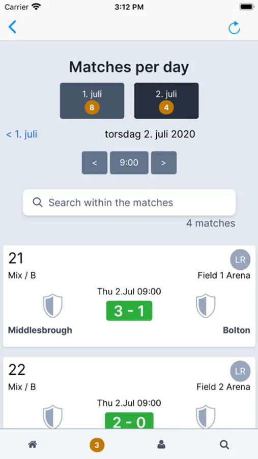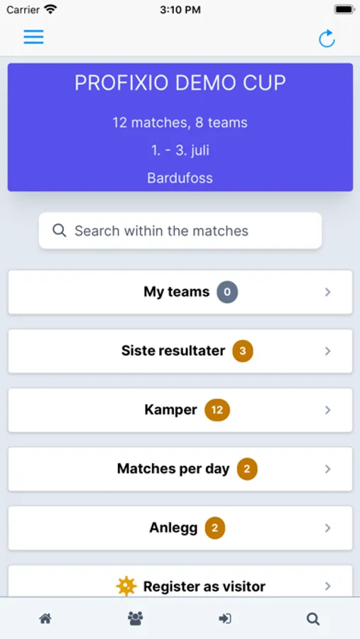 Profixio provides all matches with results and tables for all tournaments where Profixio is used.