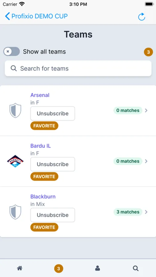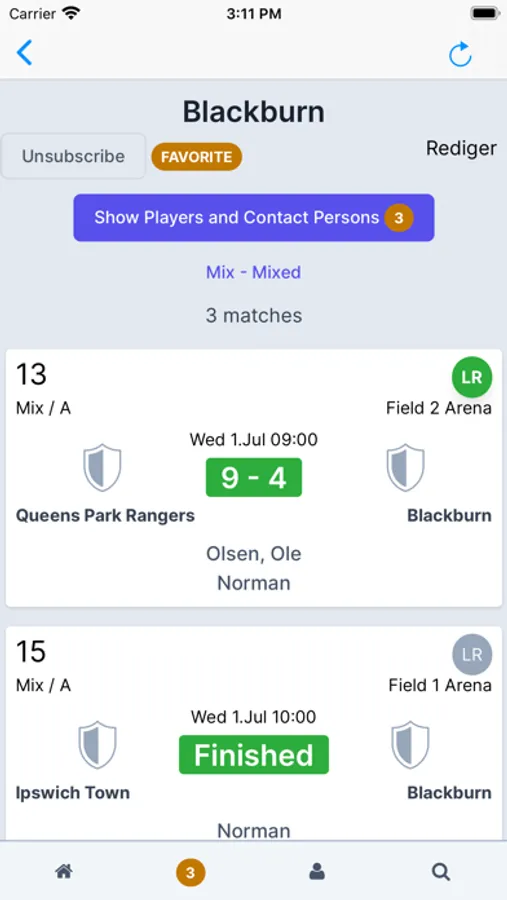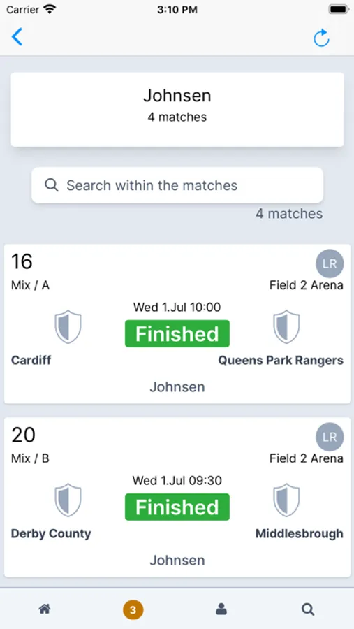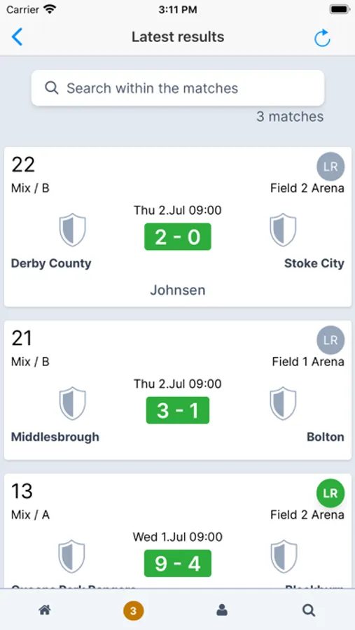Profixio provides real-time overview of the results and tables tournament you follow.