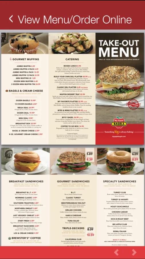 Breakfast and lunch are now even more App-ealing when you download the App for Big Apple Bagels. Take advantage of the loyalty rewards program, check out specials, get directions or contact your local Big Apple Bagels right from your smart phone! Tap the App for amenities like: