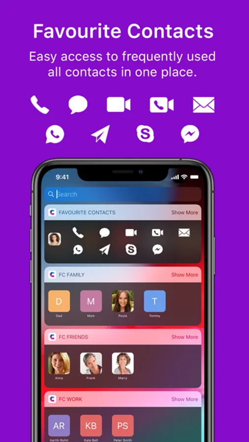 ● Call & Message, WhatsApp, Telegram, Email, FaceTime, FaceTime Audio, Skype & FB messenger