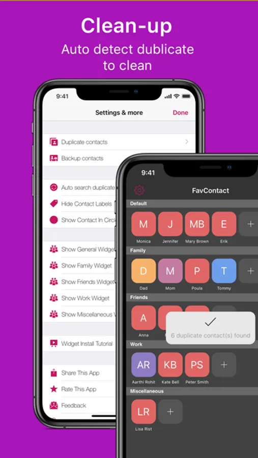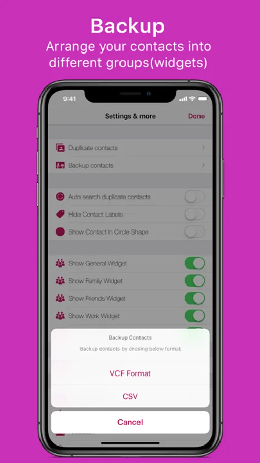 You can also organise contacts in groups (e.g. Family, Friends, Work) and access them directly from the widgets.