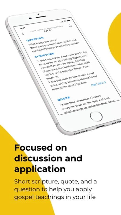 Every devotional focuses on a question that will help you ponder the scriptures more deeply and discuss how they can apply in your daily life. This helps you go beyond just reading the scriptures, so that the scriptures truly come alive in your life.