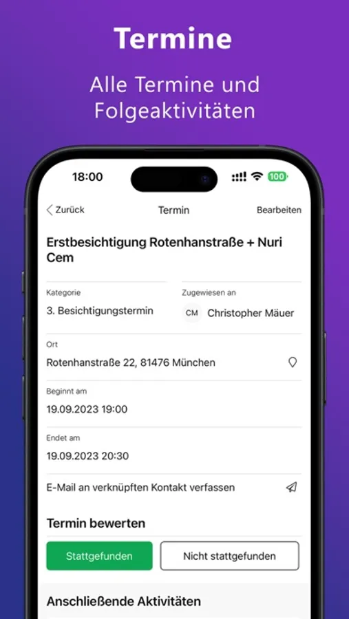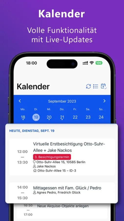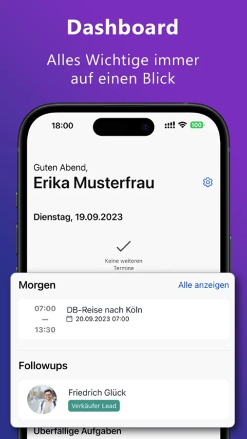 - Rechtzeitige Push-Notifications für Termine und Wiedervorlagen erhalten.