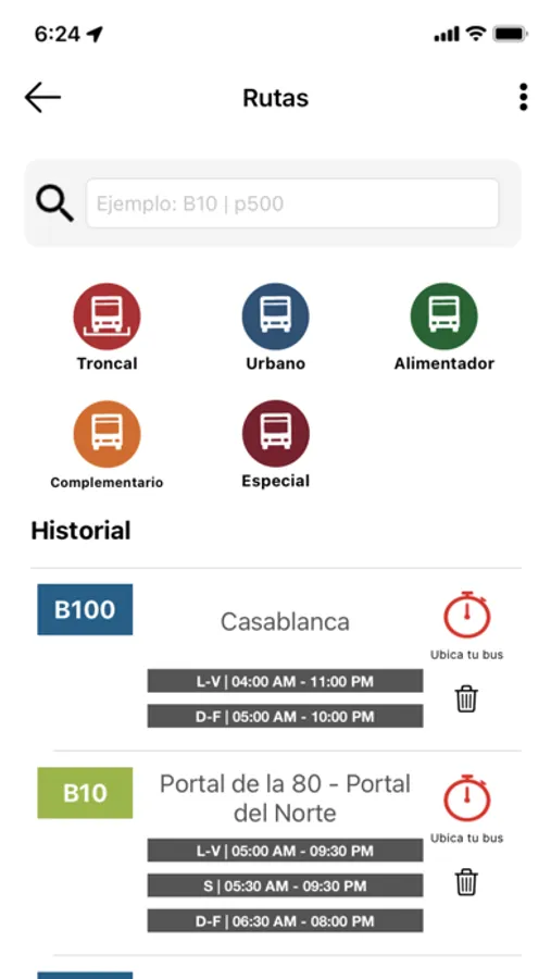 - Recorridos de las rutas, Horarios, Mapa, Zona de origen y Destino.