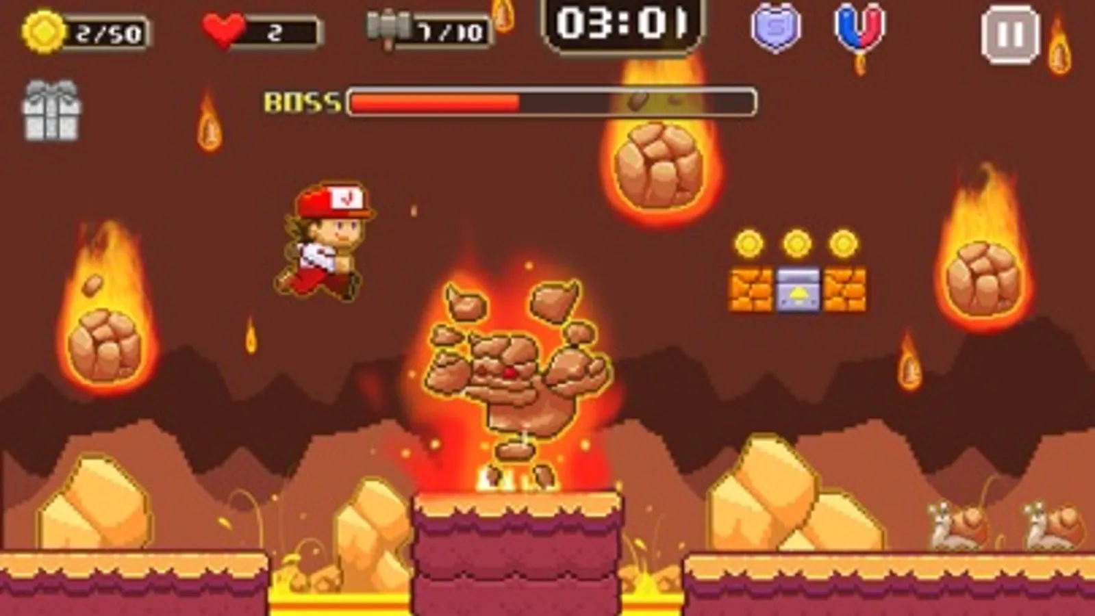 Brave boy Jim’s hometown was invaded and destroyed by some unexpected monsters. They rob Jim’s ancestral gem. Jim goes deep into the cave and strive to take it back! Jim needs your assistance badly. Help him take his hometown back!