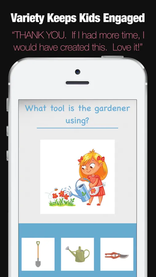 "I couldn't believe how easily my students were able to comprehend the concept of 'wh' questions after using this! Love the cute visuals and examples of questions! Great app!"