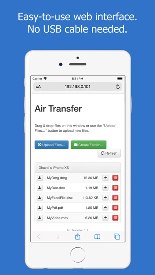 - File transfer is done via Wi-Fi but does not require an Internet connection