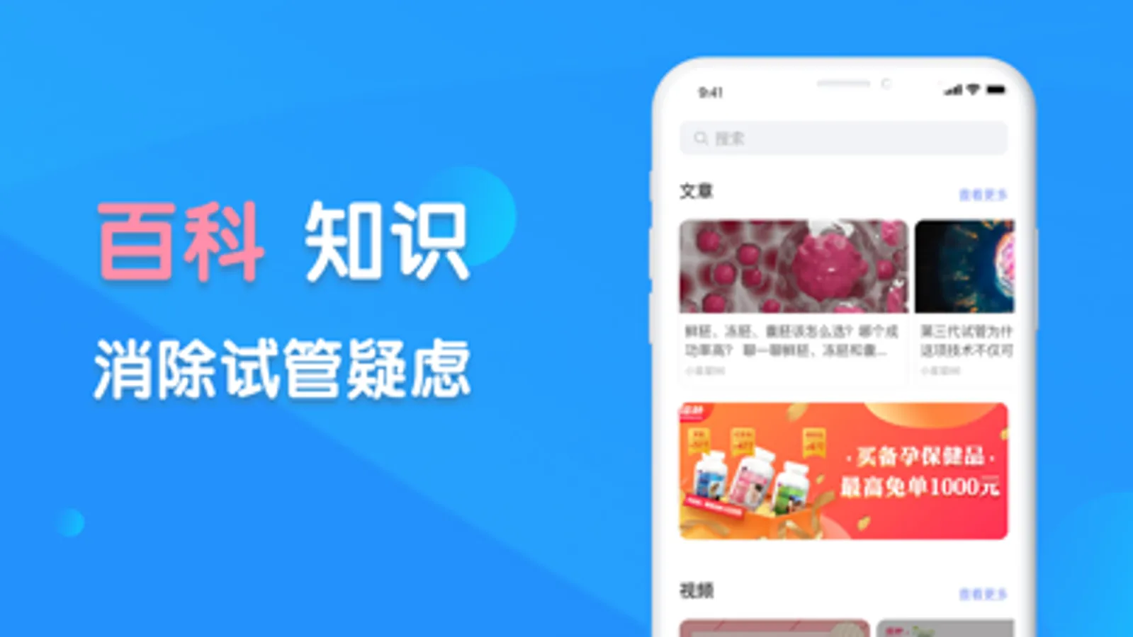 3、试管知识百科,帮助用户了解试管婴儿的流程知识,消除试管婴儿的误解与疑虑。