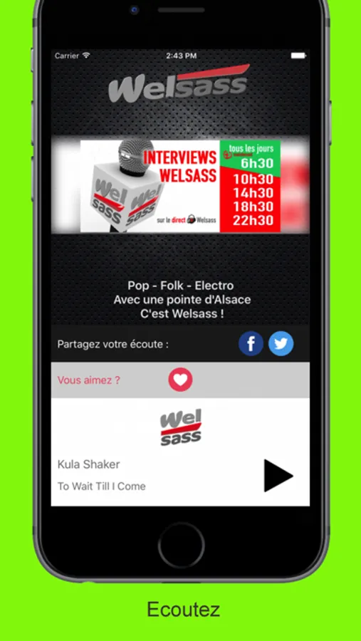 Retrouvez la webradio strabourgoise pop / folk / Electro Welsass directement sur votre iPhone / iPad