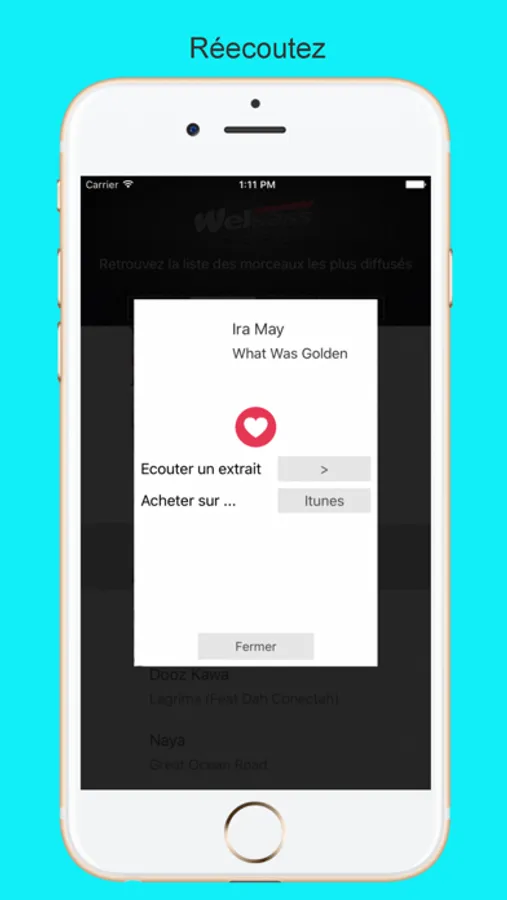 - Accédez au TOP 10 ainsi qu'à l'historique des 20 derniers titres diffusés