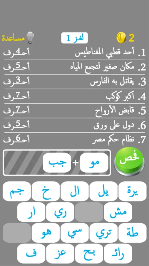 ■ قم بتركيب الأحرف بجانب بعضها البعض لفك الغاز الكلمات