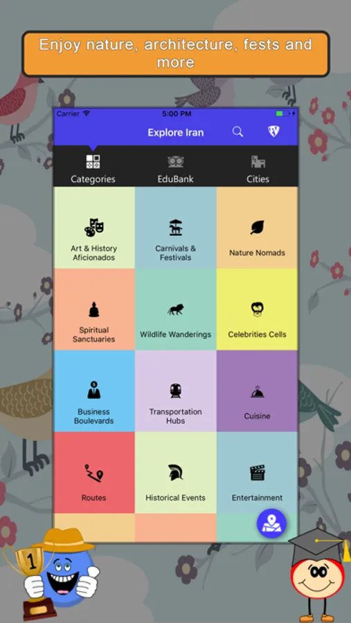 Planning a trip to Iran or want to learn about its people, places, facts, cuisine, art, history and its top languages? Explore Iran SMART Guide is a travel app to explore beautiful place, Iran. Get more than 25,000 elements of Iran to experience under many broad categories. Iran Travel Guide is sure a SMART way to travel. Plan a trip to your favorite places like Falak-ol-Aflak Castle, Qareh Kelissa, Naqsh-e-Rostam, Imam Square (Meidan Emam), House of the Bab, Shiraz, Assyrian Pentecostal Church, Saint Thaddeus Monastery, Chogha Zanbil, Shapur Cave, Tomb of Daniel and more, effortlessly.